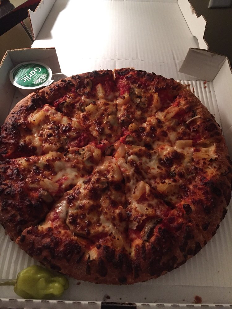 Get a taste of the tropics. This super delicious pizza is loaded with sweet, juicy pineapple tidbits, julienne-cut Canadian bacon, hickory-smoked bacon, a three-cheese blend, and real cheese made from mozzarella on our signature sauce and original fresh dough.